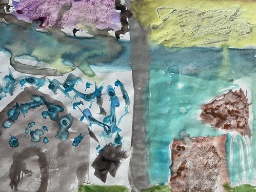 My daughter experienced a lot of medical trauma when she was younger. Eventually we started seeing a therapist together to work through some of the Big Feelings her body held from that time, even though her mind could not remember. This is a water color painting she made in therapy when she was 8 years old. On this particular day the Sadness was too big for words, but this is how she described the painting to me afterwards: