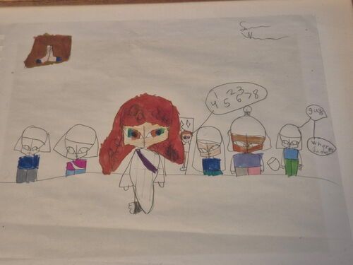 At age 9, Sarina drew this depiction of the Last Supper. She said that Judas is the one in the back counting the money. What do you notice differently about the Lord's Supper through the artist's eyes?